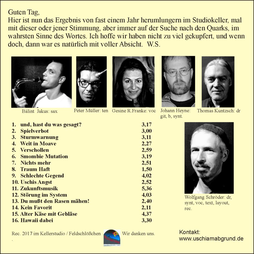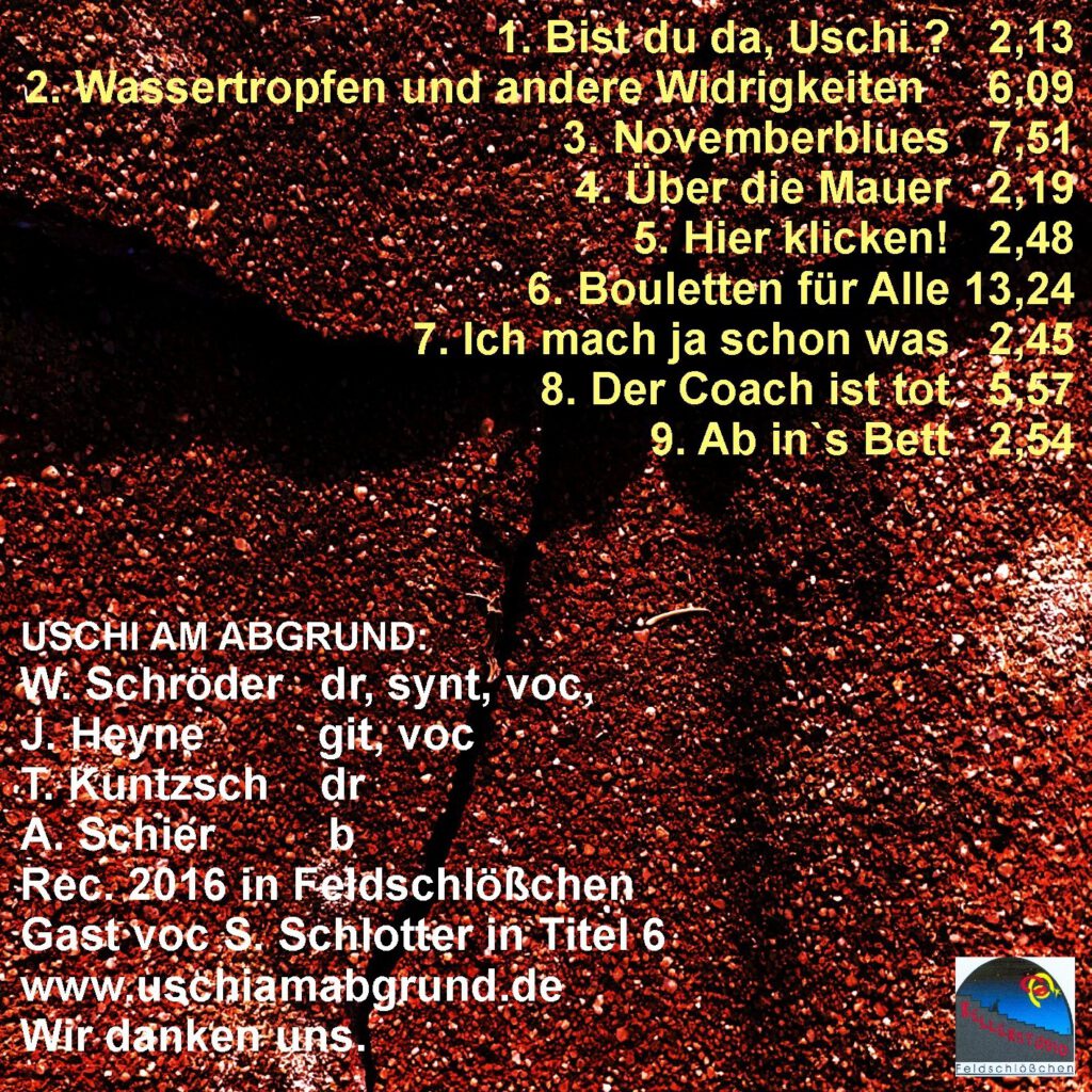 Hervorgegangen aus der noch glühenden Asche einer verwehten Optimierung, in Kombination aus Schwermut und Leichtigkeit, zeigt sich USCHI AM ABGRUND in einer unausgewogenen Balance aus Freigeist und ungeheucheltem Humor eher selten, aber manchmal eben doch.
